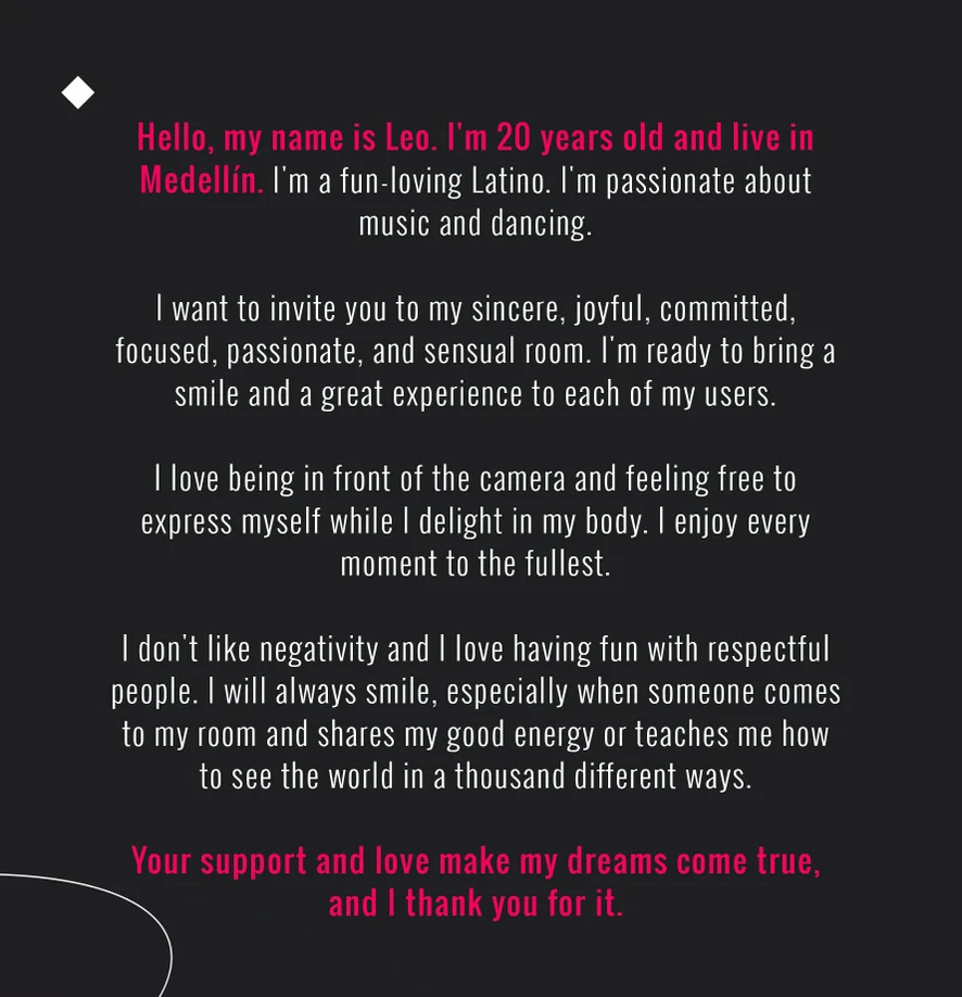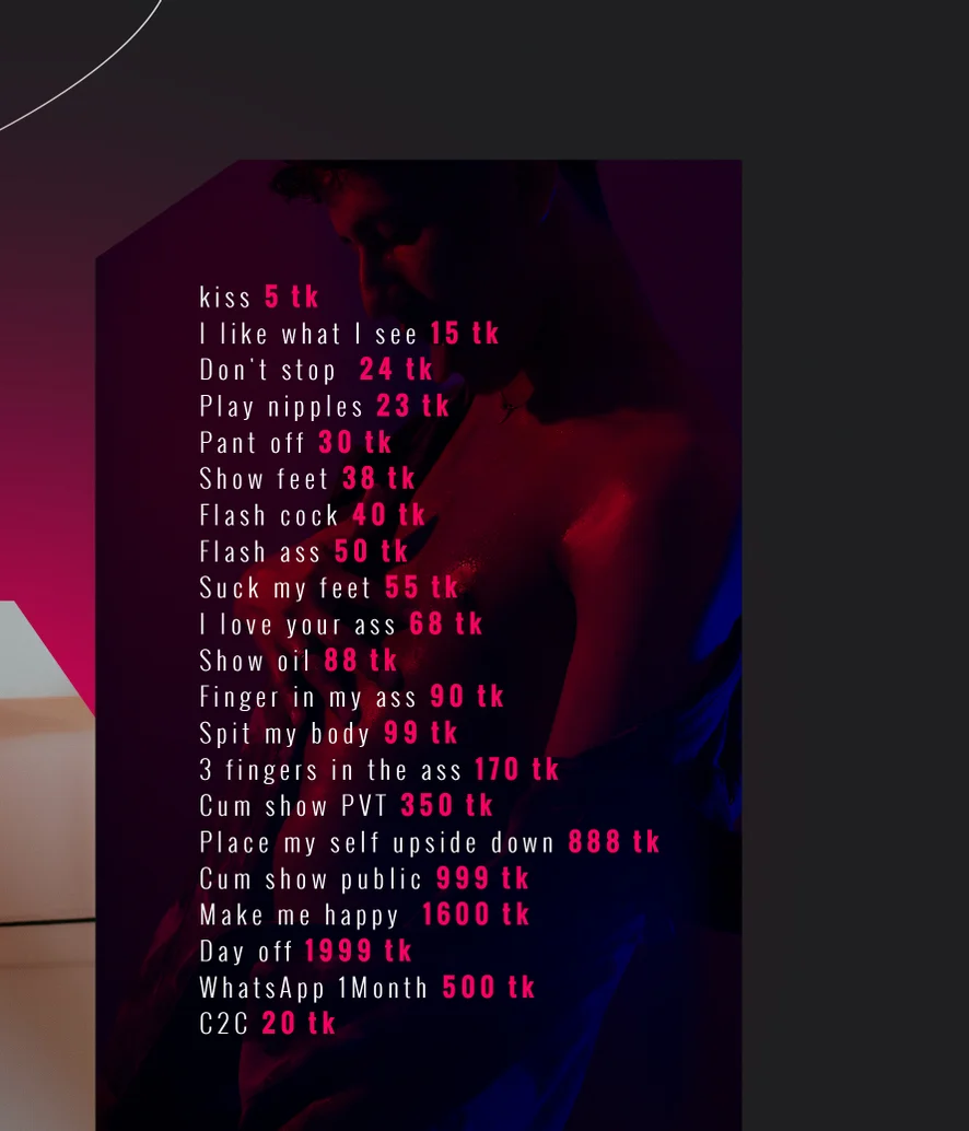 Plácání po zadku, Striptýz, Roleplay, Líbání, Masturbace, Footfetish, Sexuální hračky, Hra s výstřikem, CEI, Zezadu, Anál, Erotický tanec, Prstění, Ejakulace, Pokyny k masturbaci, Honění, Výstřik, Deepthroat, Anální hračky, Kapičky lásky, Dildo nebo vibrátor